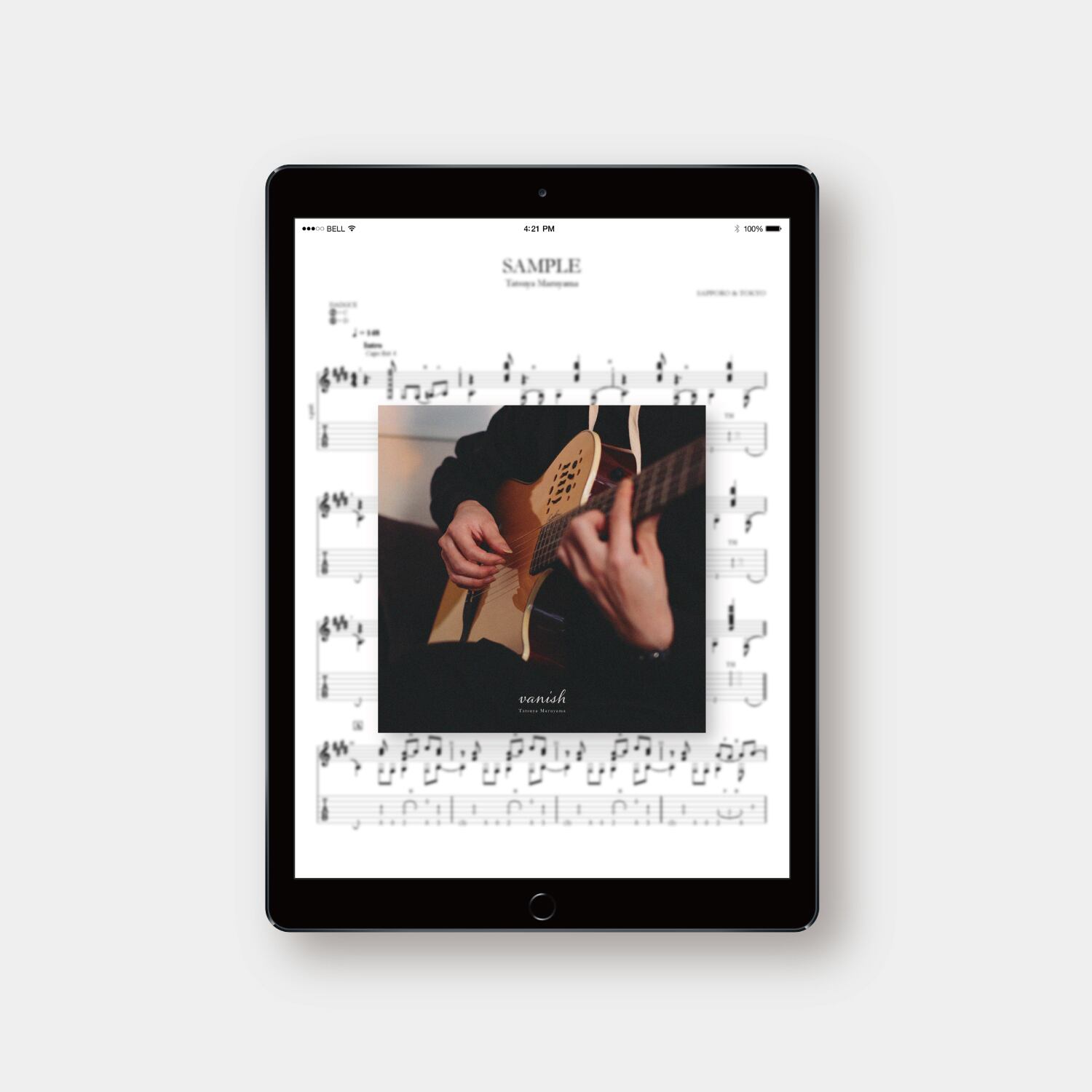 まるやまたつやのオリジナル楽曲「vanish」のTAB譜(PDFファイル)です。